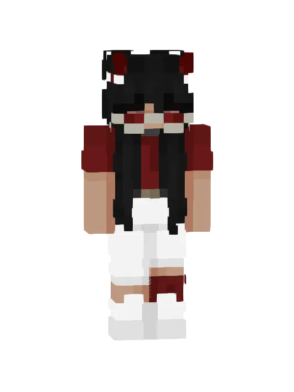 Skin dziewczyny w Minecraft z długimi, rudymi włosami, granatowym swetrem i szarymi spodniami, idealny do wyrażenia swojego stylu w grze.