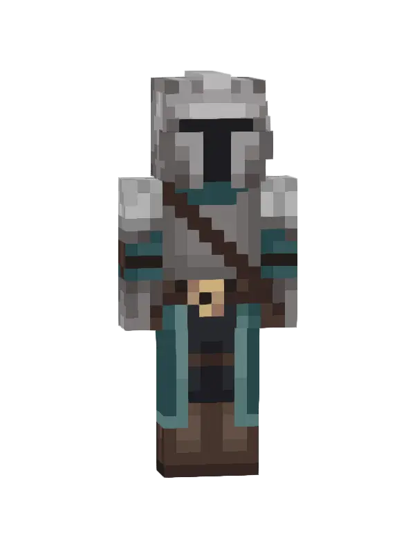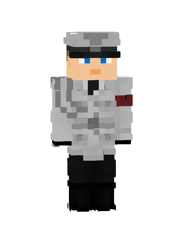 Skin w stylu żołnierza Minecraft z ciemnym płaszczem, rękawiczkami i charakterystycznym hełmem. Idealny do walki w światach Minecraft!