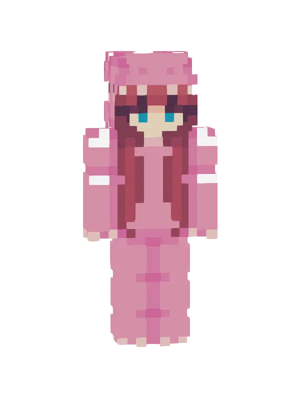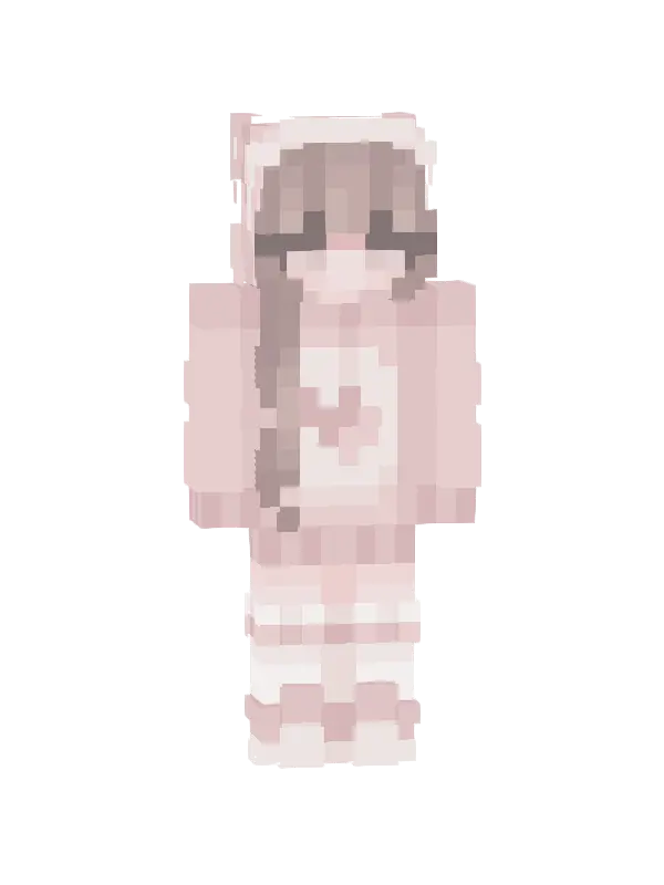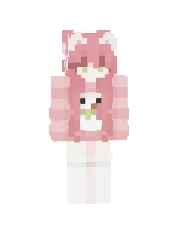 Skin kawaii kotka Minecraft z różowymi włosami i białym sweterkiem z uroczymi detalami. Idealny dla fanów słodkiego stylu w grze!