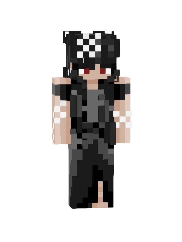 Skin Minecraft z blond włosami i czarną koszulą, zakończoną krzyżem, oraz pasiaste rajstopy to świetny wybór dla fanów stylu alternatywnego!