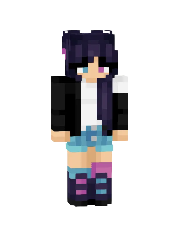 Skin modnej dziewczyny w Minecraft z długimi, blond włosami, słuchawkami, stylową bluzą w kratę i szortami. Idealny dla fanek nowoczesnego stylu!