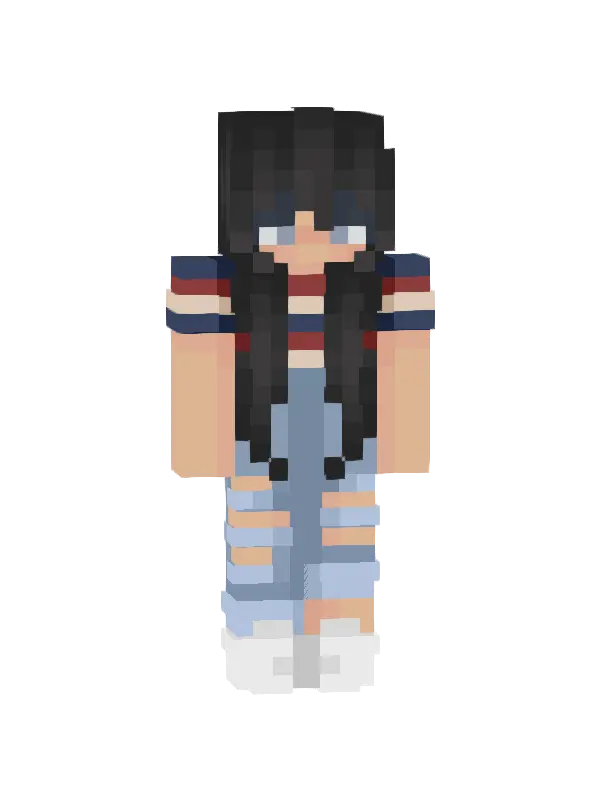 Skin Uroczej Lato w Minecraft to słodki wygląd z białą sukienką i niebieskimi paskami, podkreślony długimi, jasnymi włosami. Idealny na letnie przygody!