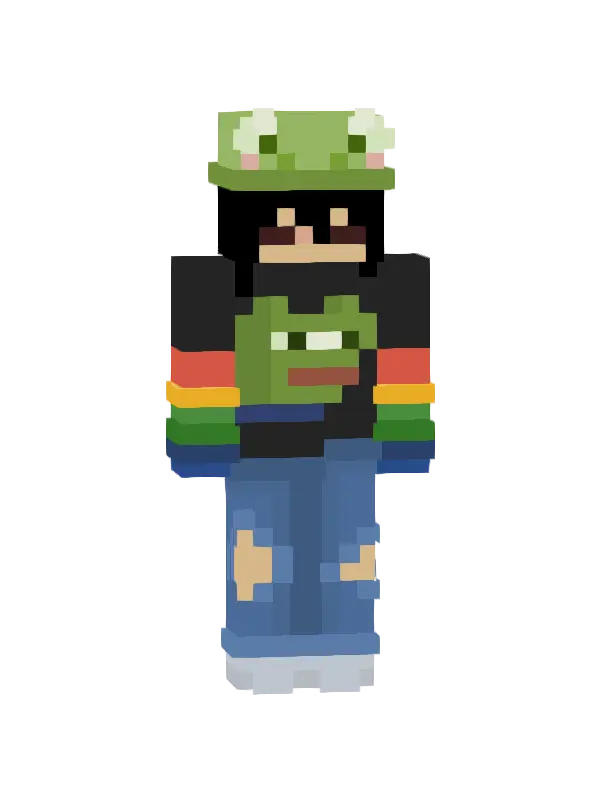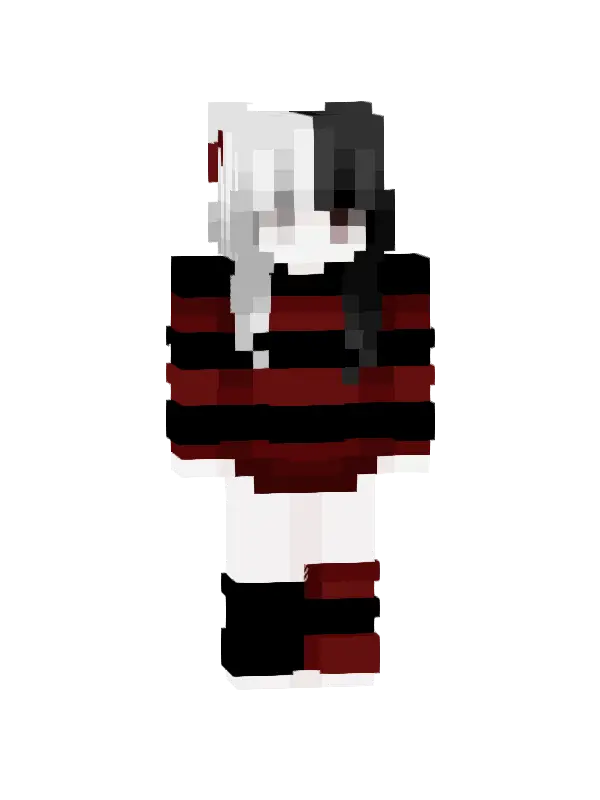 Skin Minecraft inspirowany modą, z kolorowym bobem w czerwonym i niebieskim, różowym swetrem oraz jeansami. Idealny do wyróżnienia się w grze!