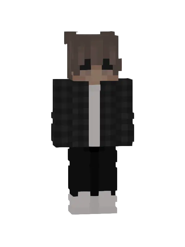 Skin Minecraft modnej dziewczyny z długimi czarnymi włosami, w beżowej kurtce, białym swetrze i niebieskich spodniach. Idealny do wyróżnienia się w grze!