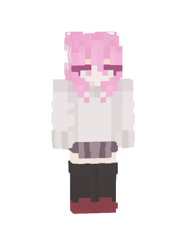 Skin uroczego Kawaii w Minecraft, z różowymi włosami i czerwoną bluzą, idealny dla miłośników stylu słodkiego i kolorowego. Wyróżnij się w grze!
