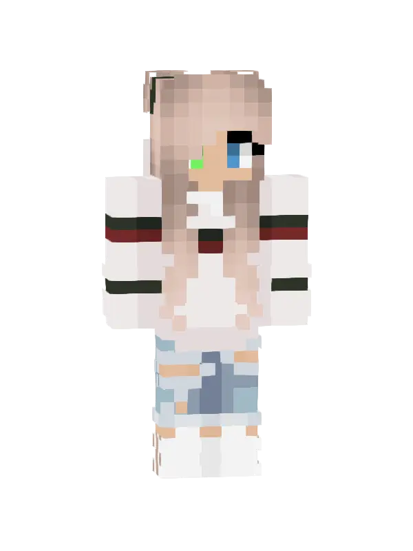 Skin Kawaii Lolly w Minecraft to urokliwa postać z długimi, szarymi włosami i zielonymi oczami, ubrana w czarny strój z kraciastą spódnicą. Idealny dla fanów słodkich i modnych skinów!