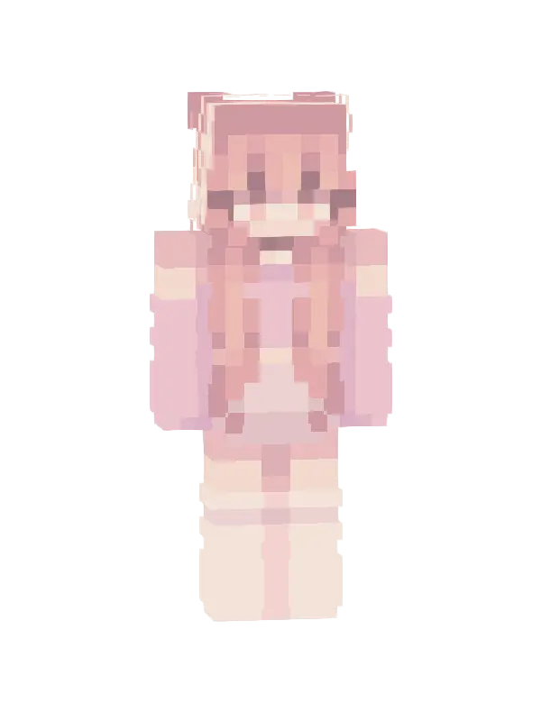 Skin Minecraft stylowej dziewczyny z długimi różowymi włosami, białą sukienką i eleganckimi dodatkami. Idealny dla fanek kawaii w grze!