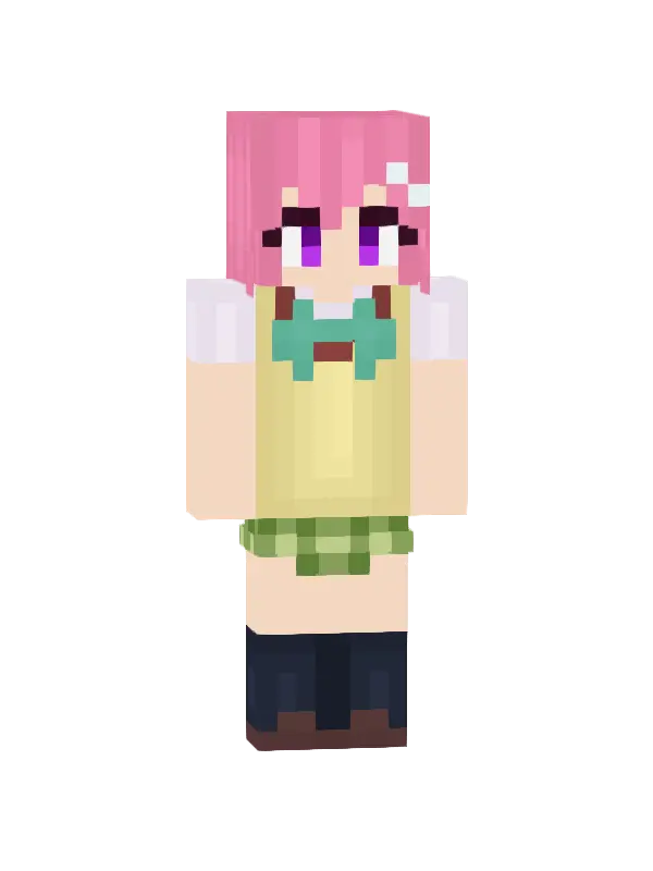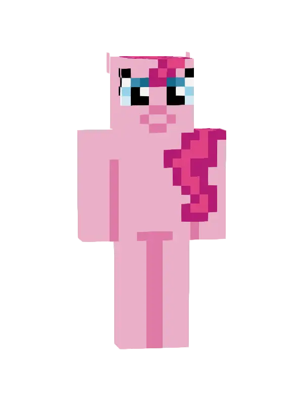 Skin różowego kucyka w Minecraft z dużymi oczami i uśmiechem. Charakteryzuje się jasnoróżowym ciałem i różową grzywą, idealny dla fanów magii!