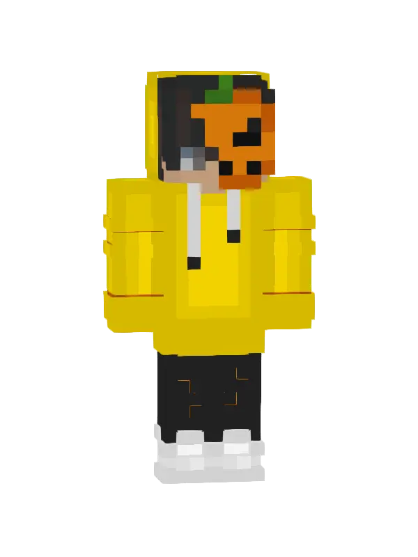 Skin Dyniowego Złoczyńcy w Minecraft to stylowy charakter z pomarańczową głową, czarnym strojem i żółtymi butami. Idealny na halloweenowe przygody!