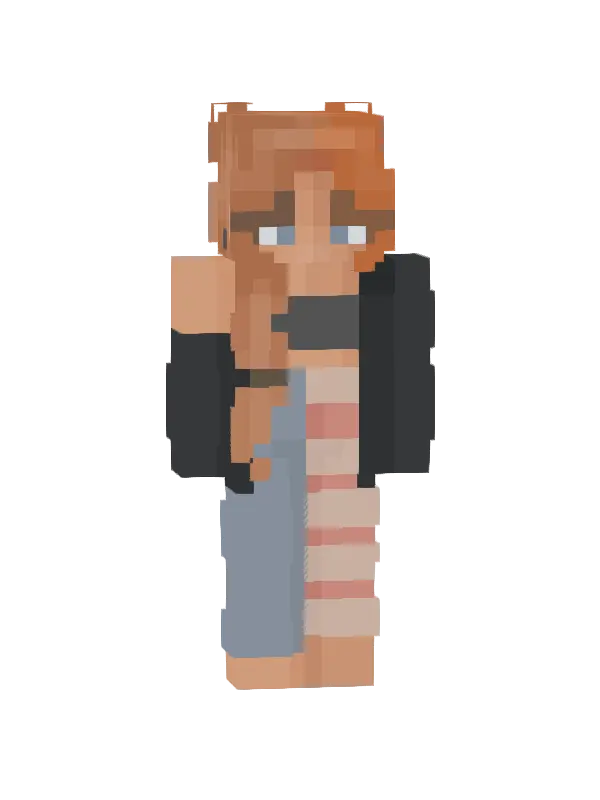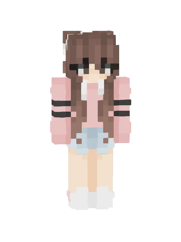 Skin Minecraft przedstawiający postać w różowym kurtce, białej bluzie i niebieskich spodniach. Stylowy wybór dla graczy ceniących modny wygląd!