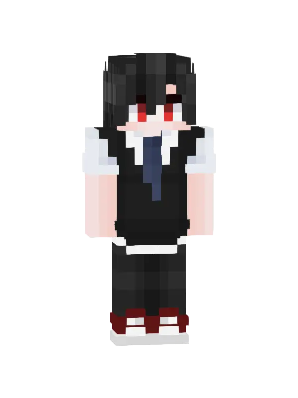 Skin Ucznia Minecraft to stylowy wygląd z jasnymi włosami i fioletowymi oczami, ubrany w elegancką czarną marynarkę i białe buty. Idealny do gry!