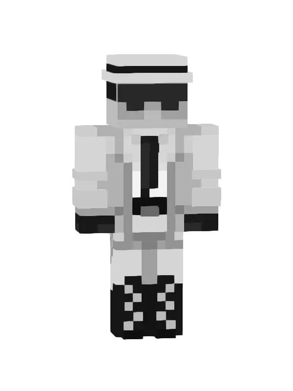 Skin Minecraft w kolorze granatowym z białymi detalami, przedstawiający modny motyw na klatce piersiowej. Doskonały wybór dla miłośników stylu!