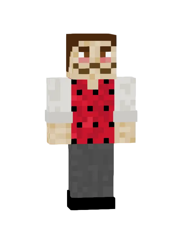 Skin Halloweenowego Złoczyńcy w Minecraft charakteryzuje się czarnym strojem, białymi oczami i czerwoną muchą. Idealny do nocnych przygód!