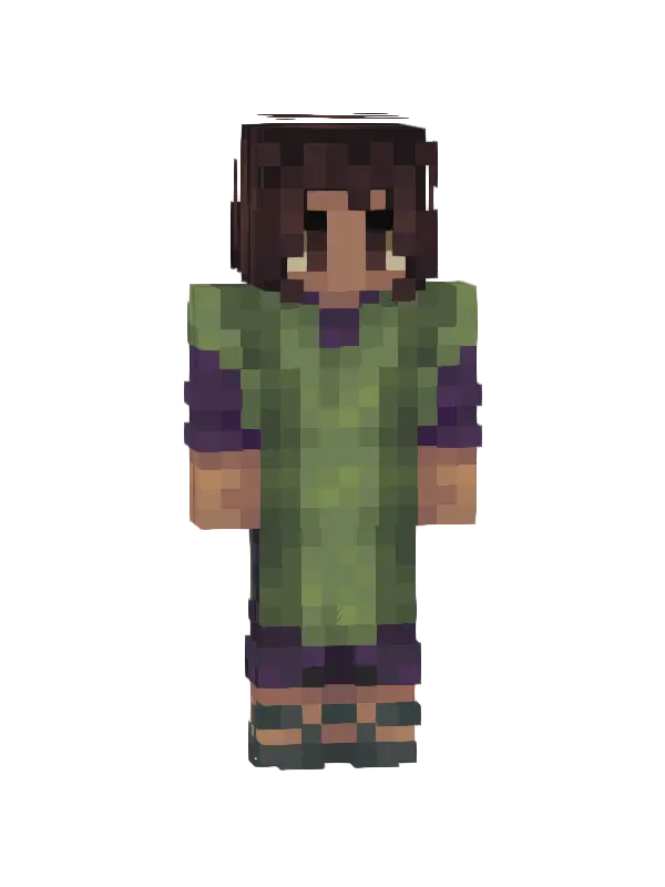 Skin Żaby Minecraft to uroczy zielony outfit z kapturem, mający oczy żaby oraz czarne spodnie. Świetny wybór dla fanów stylu kawaii!