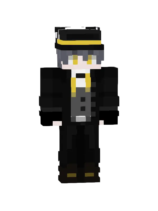 Skin eleganckiego mężczyzny w Minecraft, noszący czarny garnitur, białą koszulę i stylowe złote włosy. Idealny do wyróżnienia się w grze!