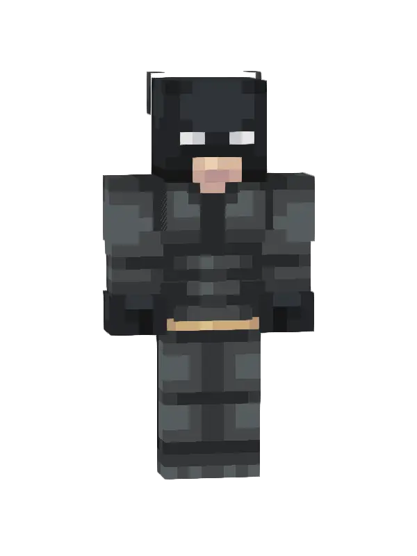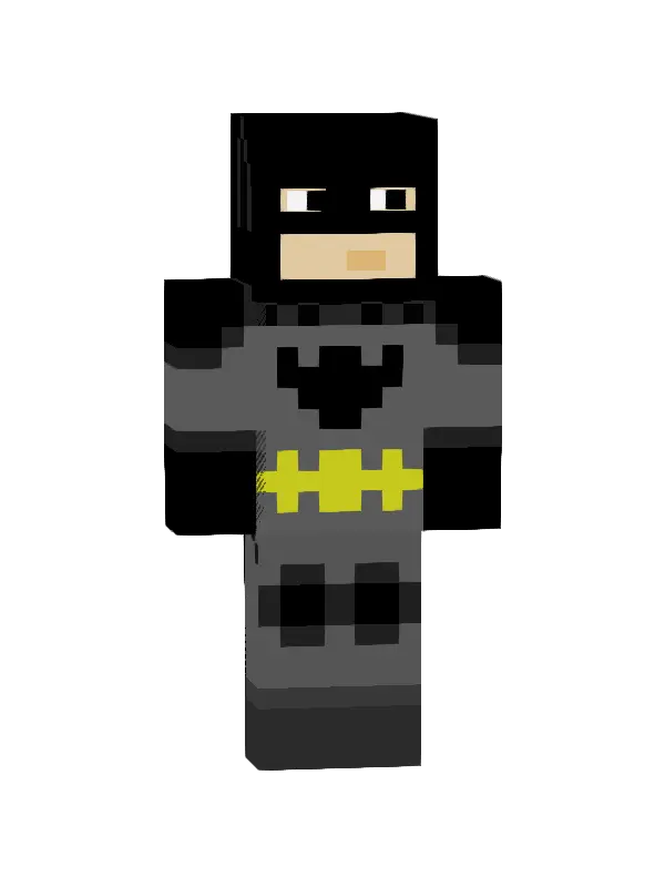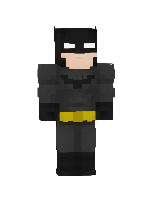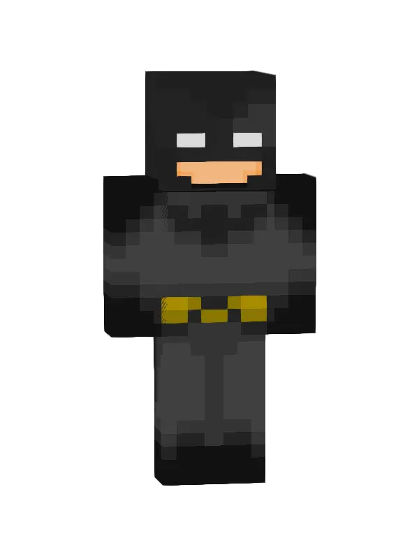 Skin Mrocznego Rycerza Minecraft z czarnym płaszczem, szarym hełmem i złotym paskiem. Idealny dla graczy pragnących dodać tajemniczości w grze!