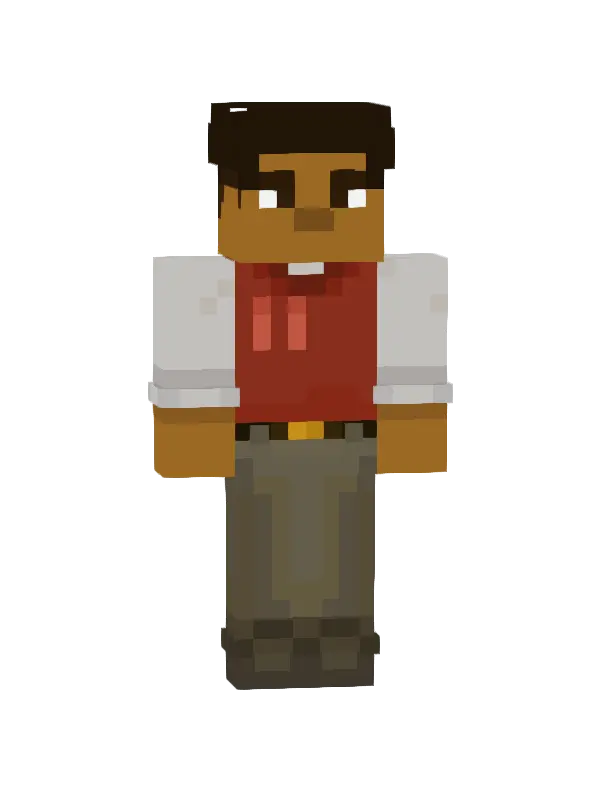 Skin Ucznia Minecraft to stylowy wygląd z krótkim, brązowym włosem i pomarańczowym akcentem. Ubrany w białą koszulę i niebieski krawat, świetnie nadaje się do gry!