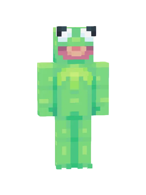 Skin Żaby Minecraft to uroczy zielony kostium z dużymi oczami i jasnym brzuchem. Świetny do zabawy i wyróżnienia się w grze!
