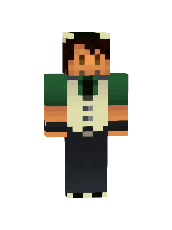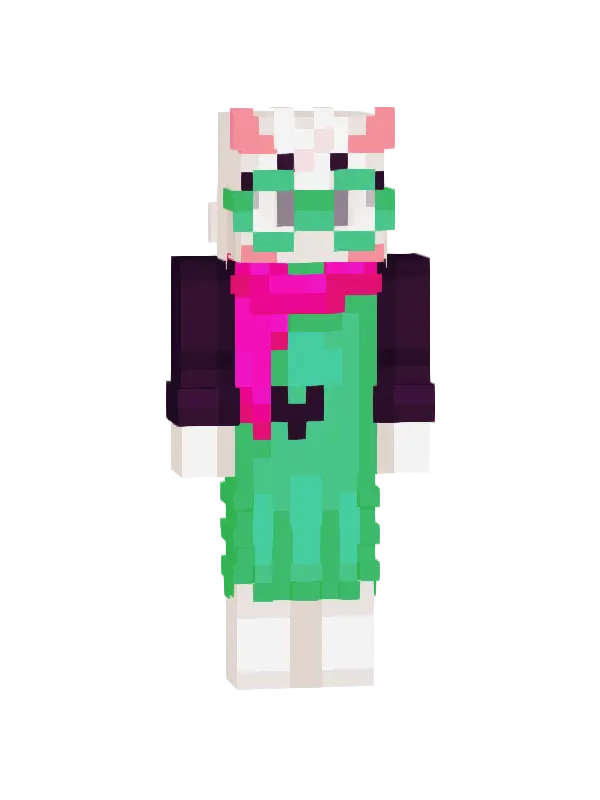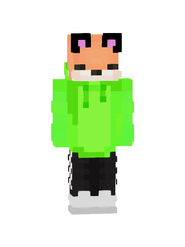 Skin Kocura w Minecraft przedstawia postać z czarnymi okularami, zieloną bluzą i spodniami w kratę, idealny dla miłośników kotów i stylu!