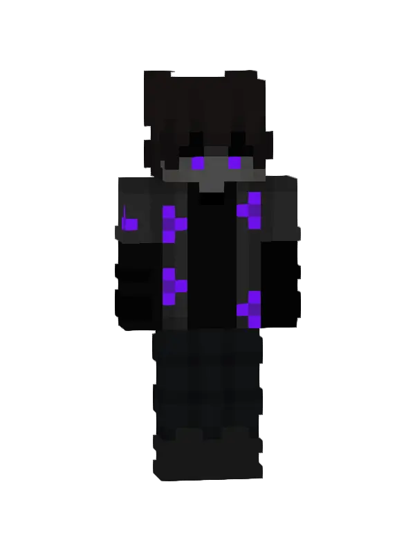 Skin Wojownika Minecraft to postać w ciemnym zbroi z fioletowymi detalami, doskonała dla fanów epickiej walki. Wyróżnij się na serwerach!