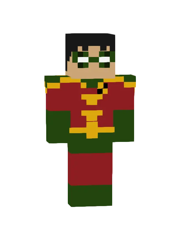 Skin Superbohatera Minecraft z czarnym kostiumem i zielonymi akcentami. Wyposażony w duże oczy, idealny do przygód w wirtualnym świecie!