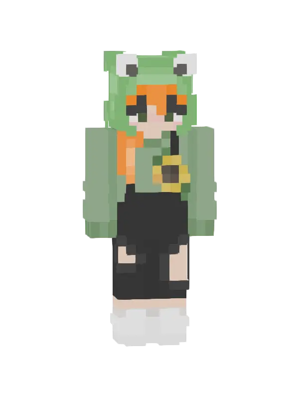 Skin Żabki w Minecraft to uroczy zestaw: zielony kapelusz z oczkami, biały t-shirt i długie spodnie. Idealny dla miłośników klasycznych postaci!