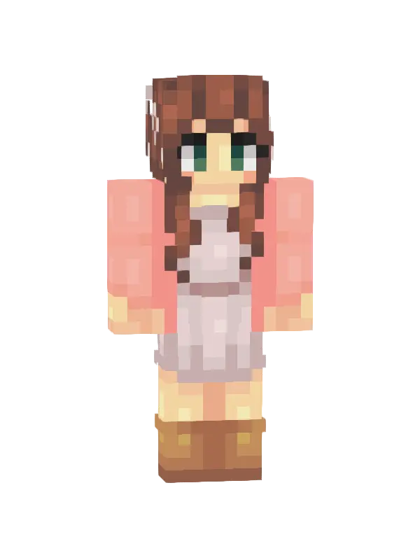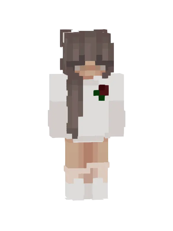 Skin dziewczyny w Minecraft charakteryzuje się długimi, brązowymi włosami, żółtym swetrem ozdobionym różą i spódnicą w kratę, idealny na serwery!