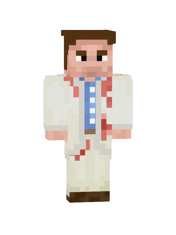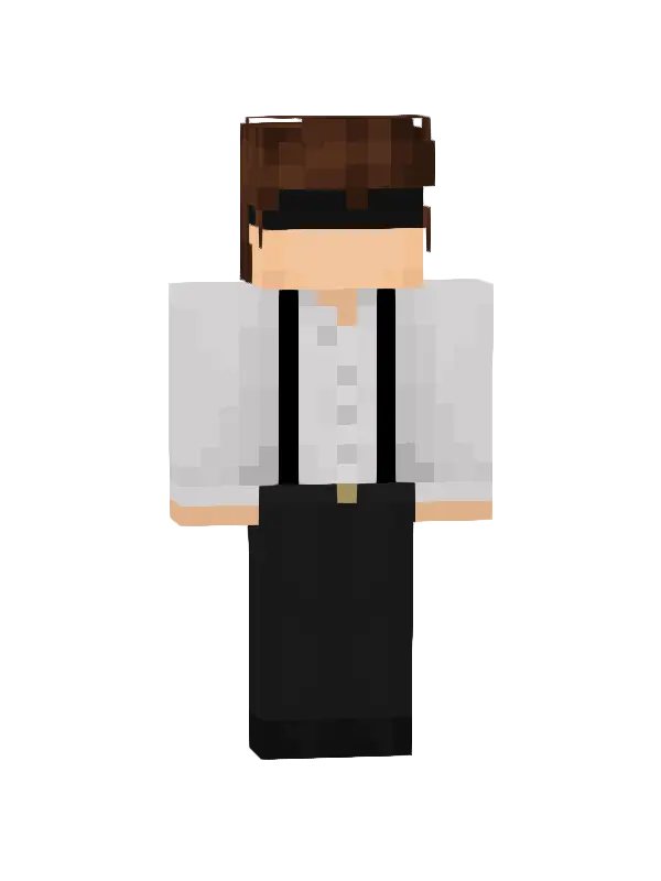 Skin eleganckiego dżentelmena w Minecraft, z białą koszulą, czarnym garniturem i czerwoną krawatem. Idealny dla graczy pragnących stylowego wyglądu!