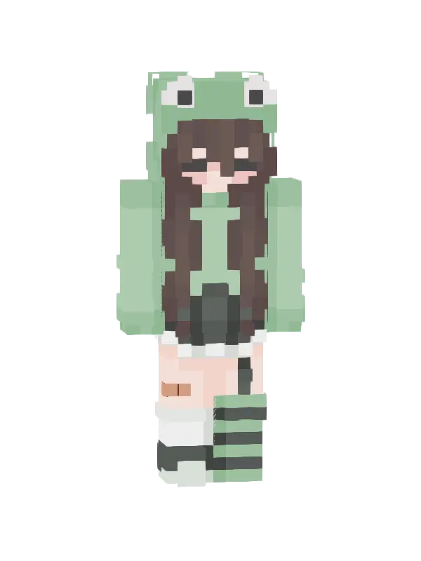 Skin Żaby w Minecraft to uroczy zielony strój z kapturem, dużymi oczami i skarpetkami. Idealny dla miłośników przyrody, wyróżnij się w grze!