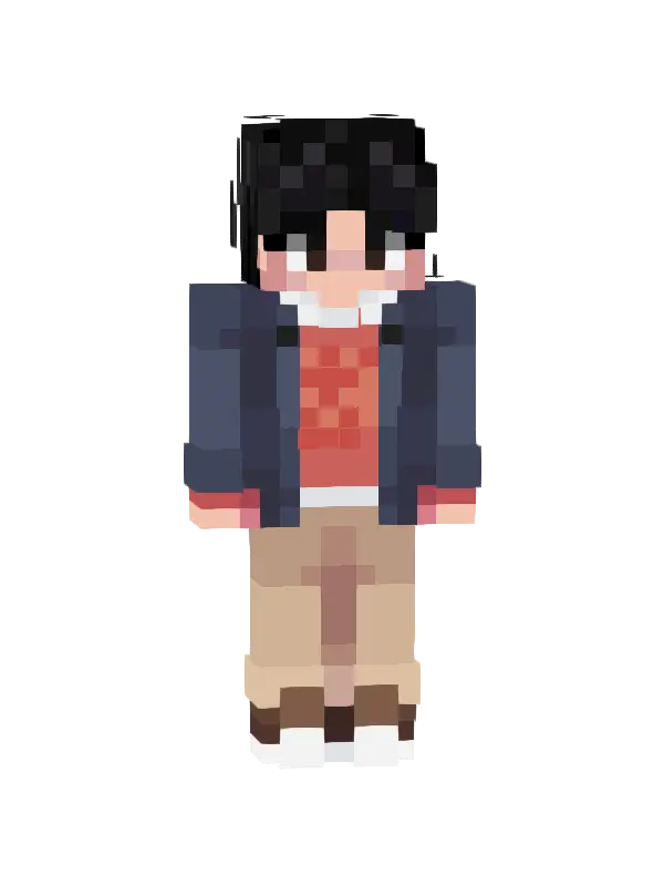 Skin Króla Minecraft to stylowy wygląd z koroną na głowie, szarym swetrem, białą koszulą, granatowymi spodniami i sportowymi butami. Idealny dla monarchów!