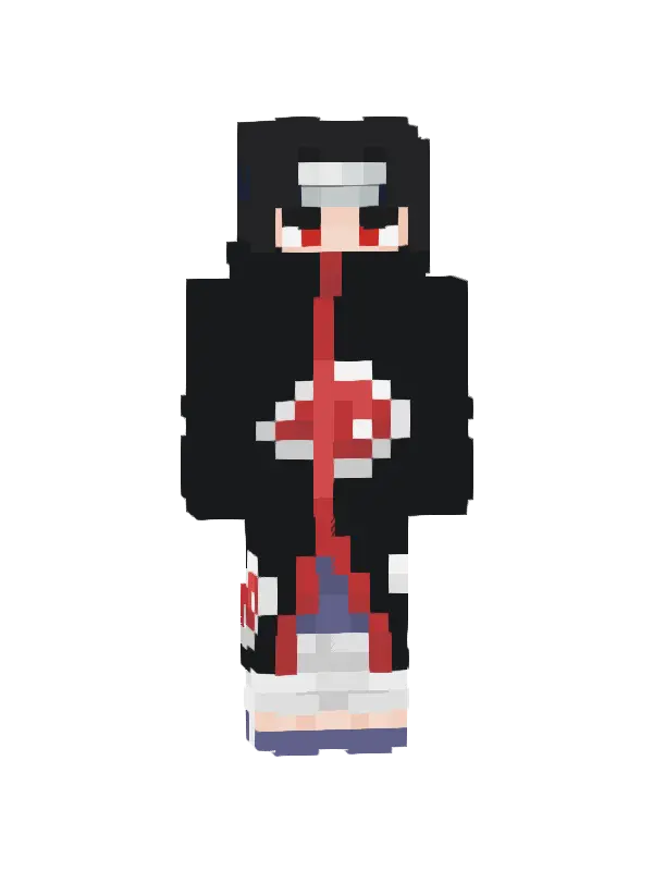 Skin Akatsuki Minecraft to tajemniczy wojownik w czarnej szacie z czerwonymi chmurami, idealny dla fanów anime. Wyróżnia się stylowym wyglądem!