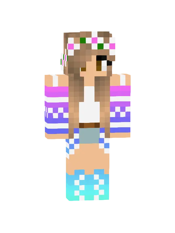 Skin stylowej dziewczyny w Minecraft z długimi brązowymi włosami, paskami na rękach, szortami i modne buty. Idealny wybór dla miłośniczek mody!