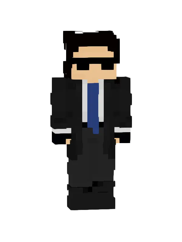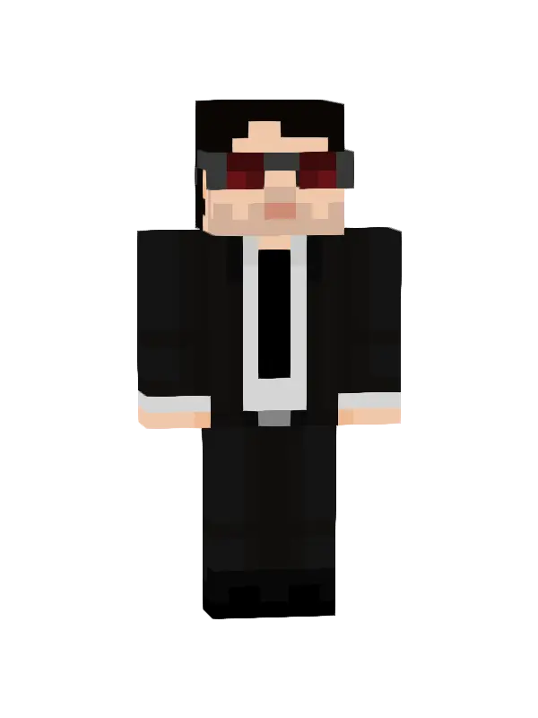 Skin Pana w garniturze Minecraft to elegancka postać w czarnym garniturze, białej koszuli i krawacie, z zielonymi oczami, idealny dla stylowych graczy!