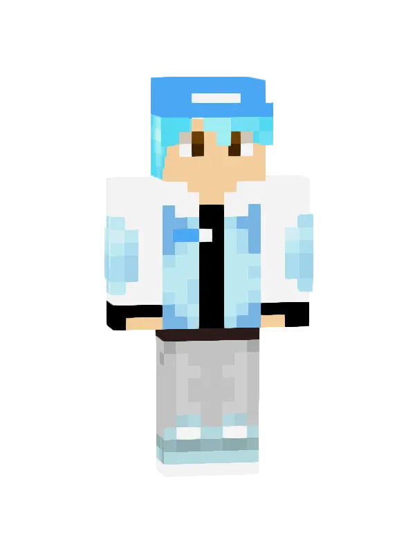 Skin Minecraft stylizowany na modnego bohatera z blond włosami, białą kurtką i ciemnymi spodniami. Idealny do wyróżnienia się w grze!