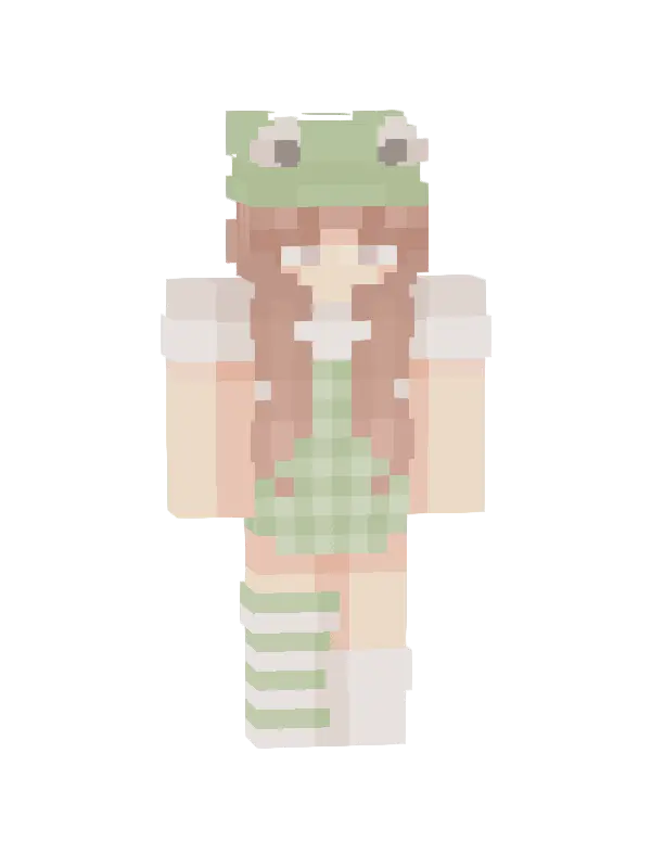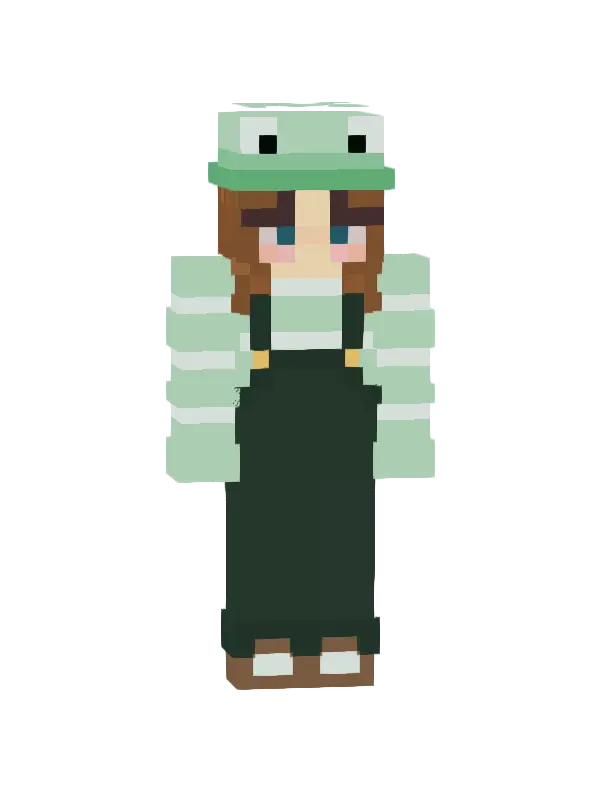 Skin żaby Minecraft to urocza postać z zielonym kapeluszem i swetrem. Idealny do zabawy w świecie Minecraft, wyróżni się każdą przygodą!