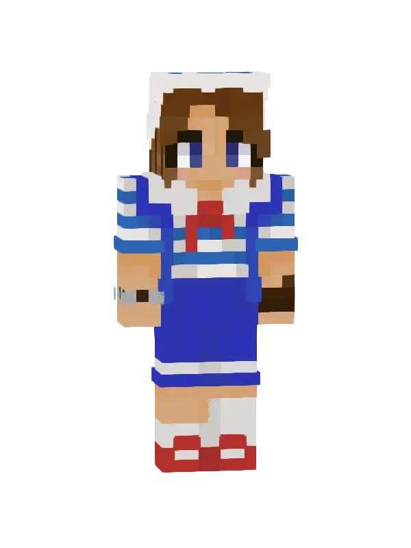 Skin Policjantki Minecraft w niebieskim mundurze z czapką i błyszczącym odznaką, doskonały wybór dla fanów przygód i akcji w grze!
