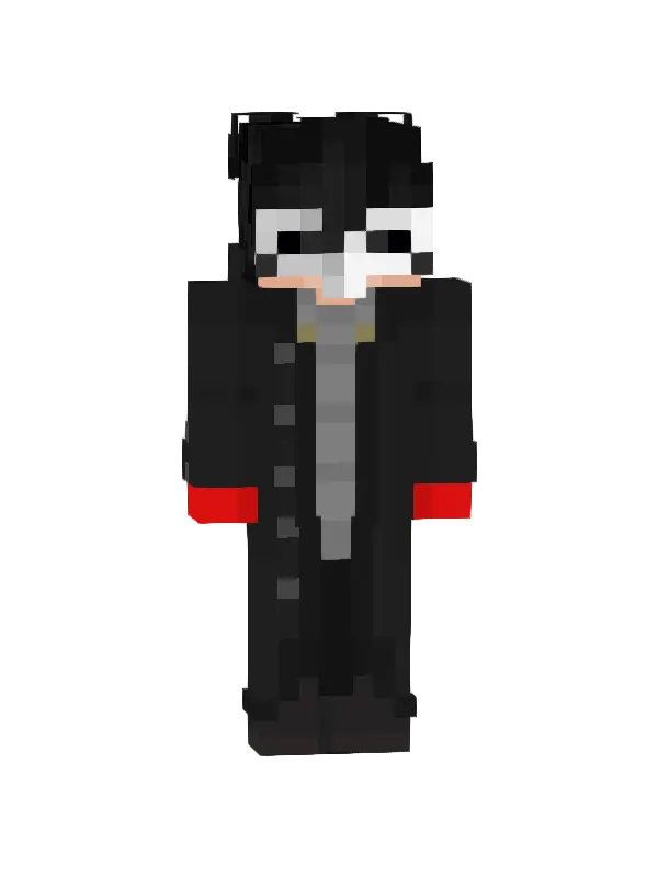Skin Złotego Dżina Minecraft to elegancki strój z czarnym garniturem, białą koszulą i czerwonym krawatem, idealny dla miłośników fantazji!