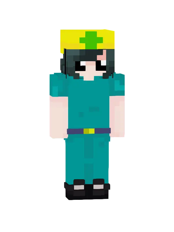 Skin Medyka Minecraft to stylowy wygląd z zieloną odzieżą, żółtą opaską oraz niezbędnymi akcesoriami, idealny do wsparcia i współpracy w grach!