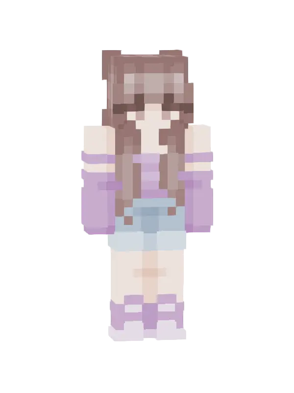 Skin Minecraft z dziewczyną w niebieskich ogrodniczkach i szarej bluzie, z długimi rudymi włosami, idealny dla miłośniczek modnych stylów!