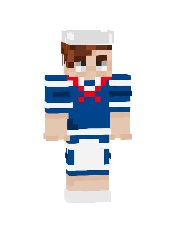 Skin Marynarza w Minecraft to stylowy strój z białą czapką, białą koszulą i niebieskimi ogrodniczkami. Idealny dla miłośników morskich przygód!