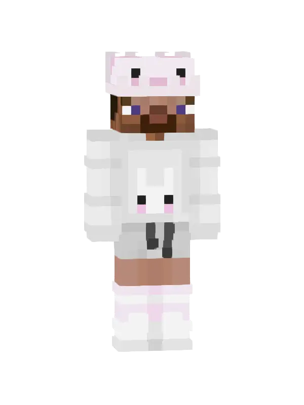 Skin Białego Królika Minecraft to uroczy stworek z białym futerkiem, różowymi policzkami i dużym brzuszkiem. Idealny dla miłośników kawaii w grze!