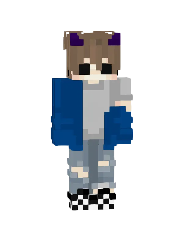 Skin kota Minecraft z niebieskimi włosami i urocza bluzą z misternym motywem kota. Idealny wybór dla miłośników zwierząt w grze!