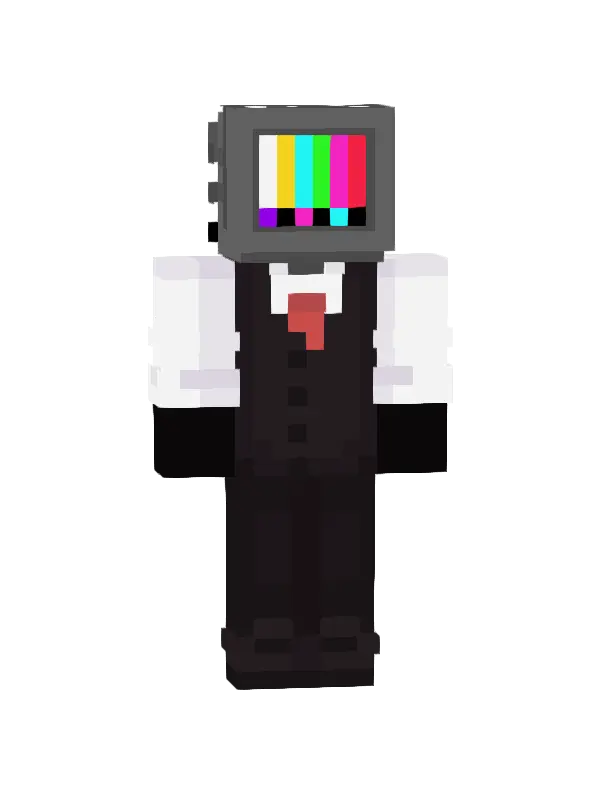 Skin Komputera Minecraft to unikalny projekt z ekranem zamiast głowy, eleganckim garniturem i czerwoną krawatem. Idealny dla fanów technologii!