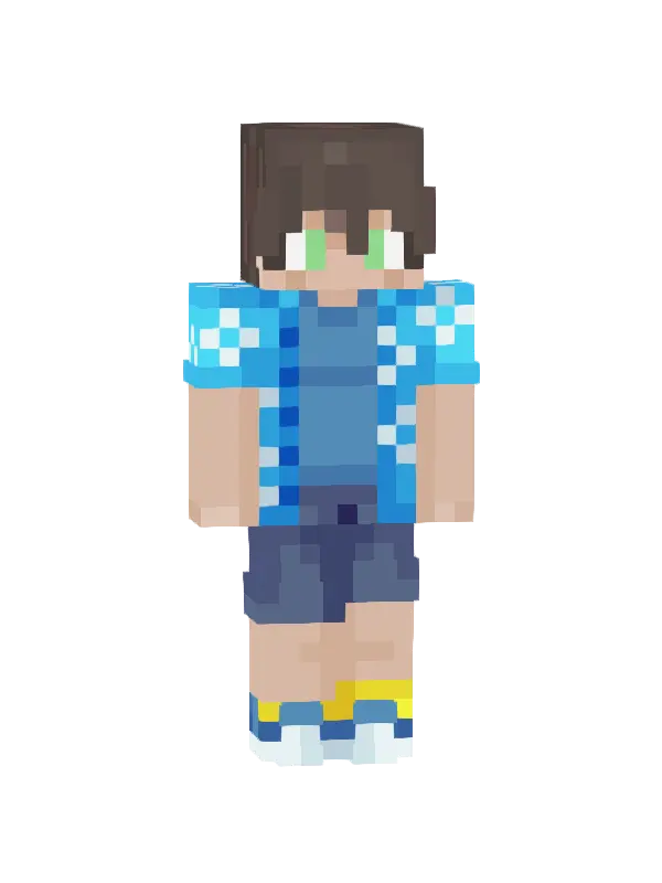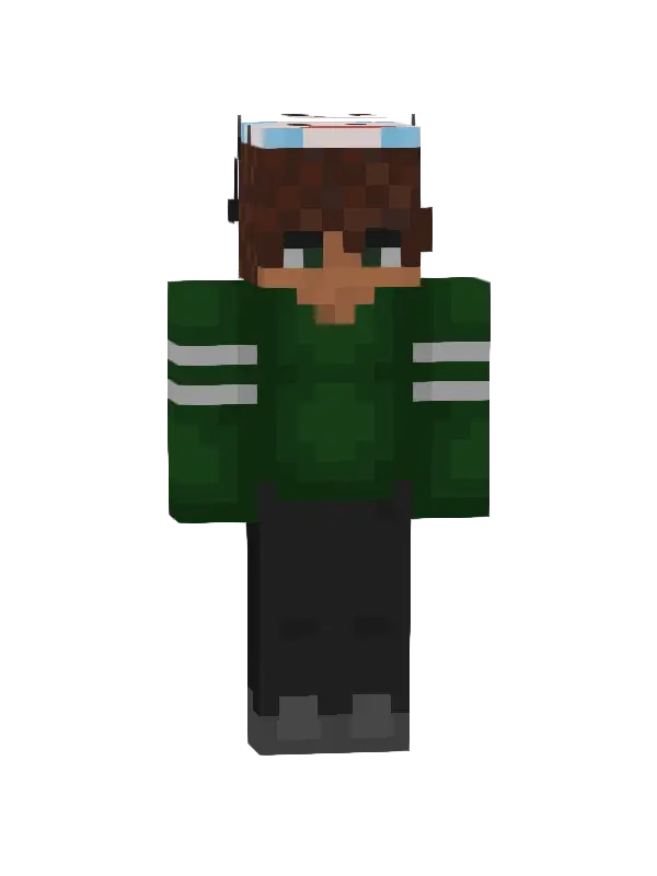 Skin Sportowca Minecraft to dynamiczny ubiór z zieloną bluzą z kapturem, niebieskimi spodniami i czerwono-białymi butami. Idealny dla aktywnych graczy!