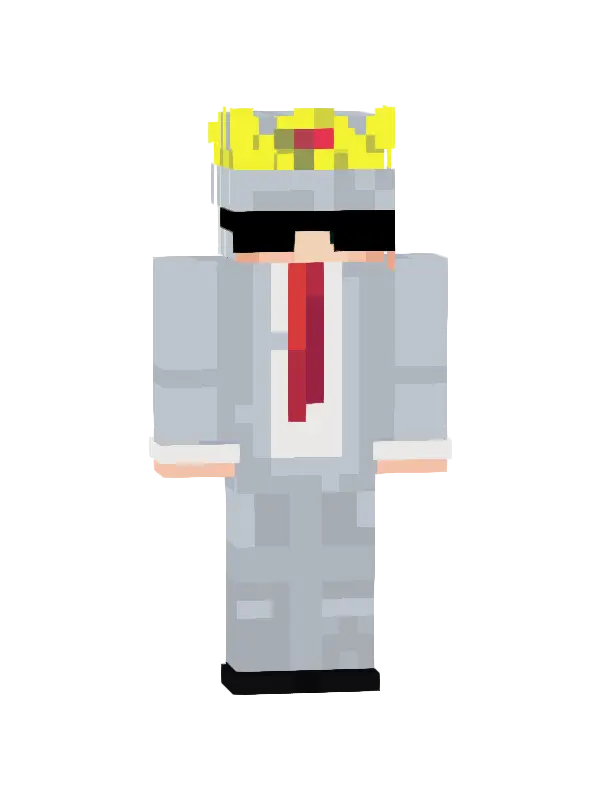 Skin Króla Minecraft to elegancki ubiór z czarną kamizelką, białą koszulą i czerwonym krawatem, zwieńczony złotą koroną. Idealny dla władców!