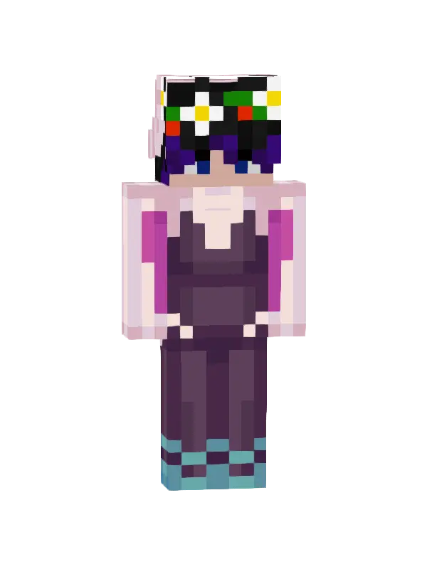 Skin Kawaii Księżniczki do Minecrafta, charakteryzujący się różową sukienką, długimi włosami i kwiatowym wiankiem. Idealny, by wyróżnić się w grze!
