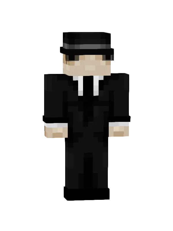 Skin eleganckiego ucznia Minecraft z ciemnym garniturem, okularami i czapką. Idealny dla tych, którzy chcą wyglądać stylowo w grze!
