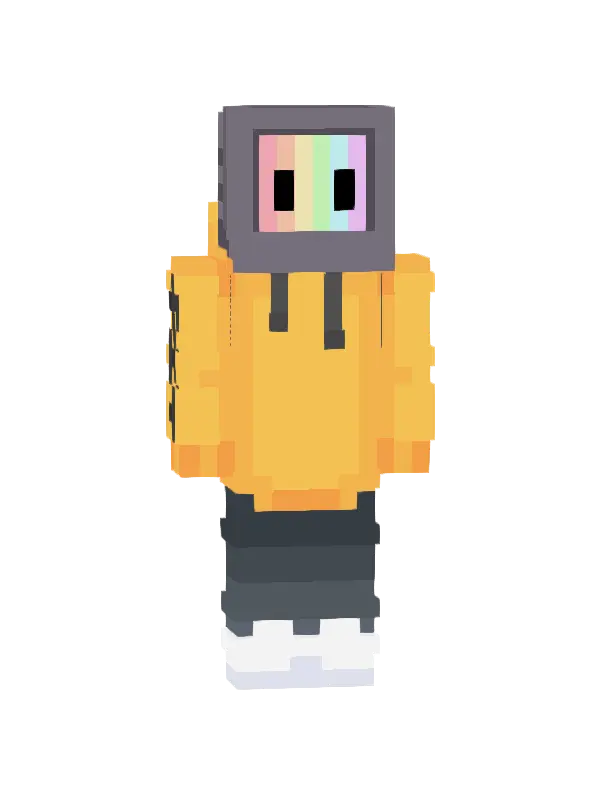 Skin do Minecraft inspirowany nowoczesnym stylem, z żółtą bluzą i kolorowym ekranem zamiast głowy. Idealny dla kreatywnych graczy!