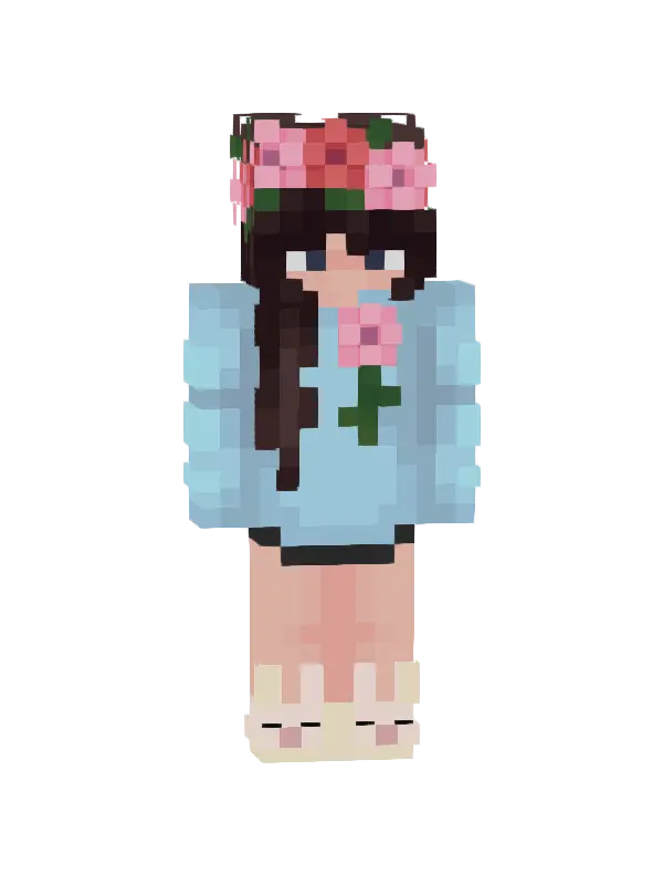 Skin Kawaii w Minecraft to urocza postać z niebieskimi włosami i różowymi akcentami, ubrana w czarny top i spódnicę. Idealny do zachwycania innych!