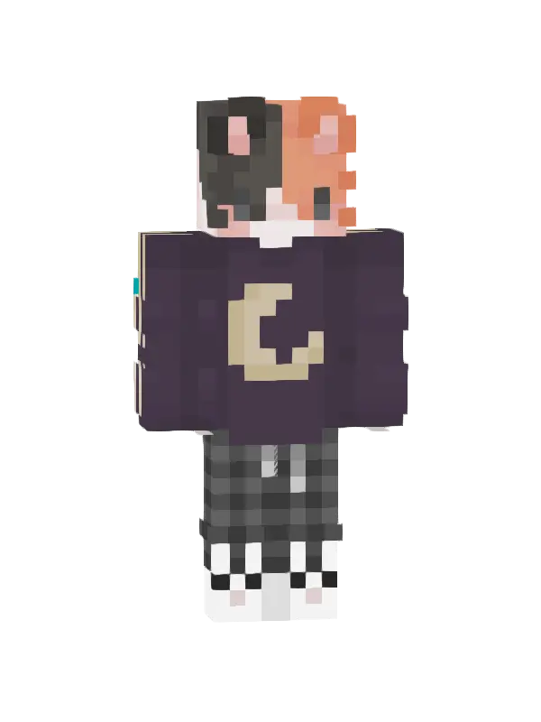 Skin w Minecraft przedstawia postać w brązowej bluzie z kapturem, szarych spodniach w kratę oraz białych sneakersach, idealny dla miłośników stylu!